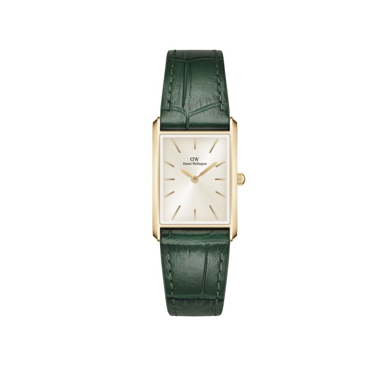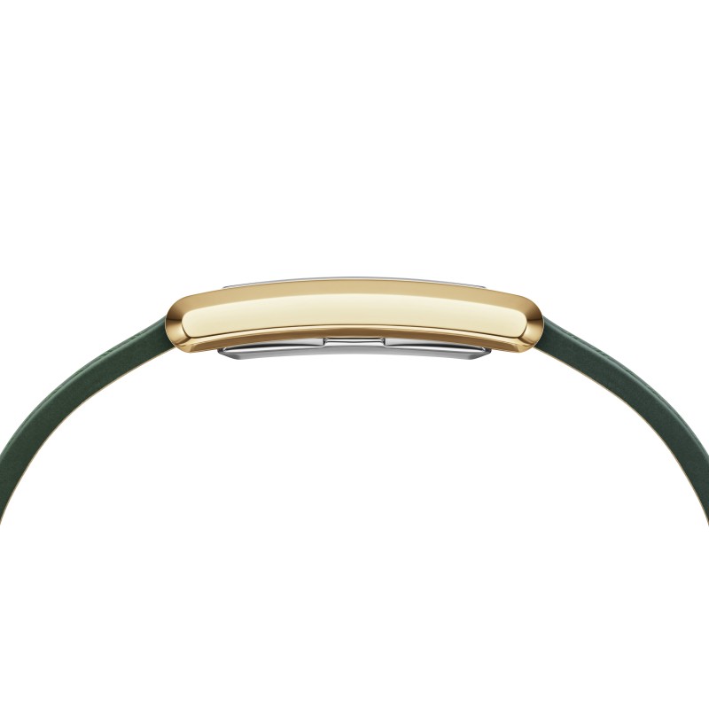 Con elegantes bordes geométricos y dos tamaños a elegir, nuestra colección Bound aporta una simetría perfecta a tu muñeca. La caja rectangular curvada de este reloj dorado coincide con el ancho exacto de su correa de piel esmeralda con estampado de cocodrilo —lo que te ofrece una esfera de color champán con efecto rayos de sol perfectamente integrada.