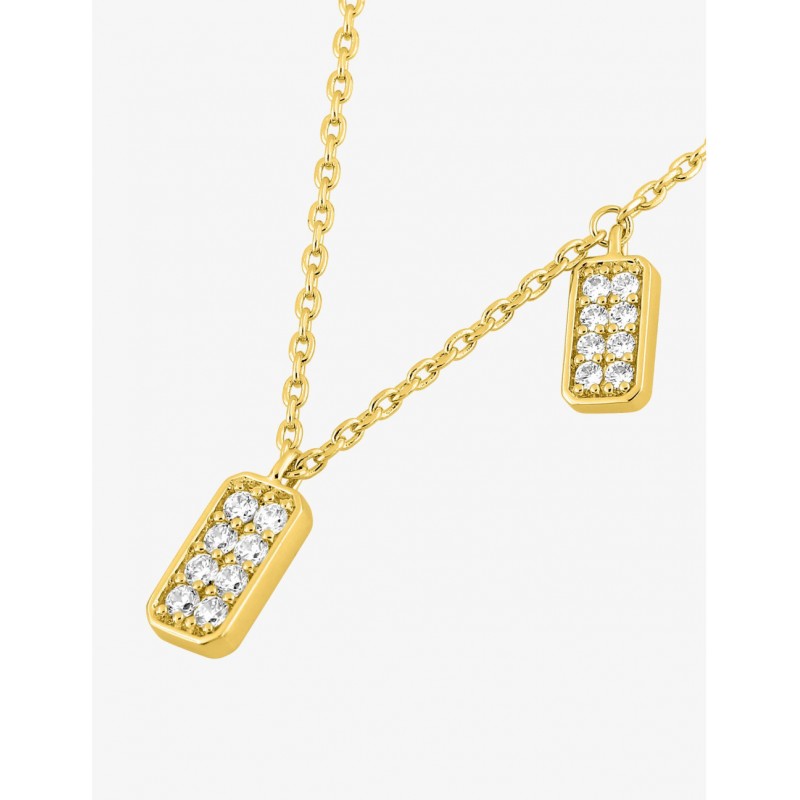 Dos módulos rectangulares, adornados con dieciséis circonitas cúbicas blancas meticulosamente engastadas, crean un refinado efecto luminoso que atrae sutilmente la mirada.