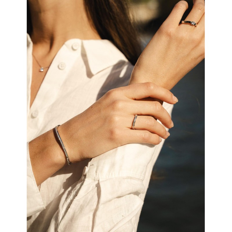 Su engaste de circonitas cuidadosamente alineadas crea una línea contemporánea y refinada, generando un brillo fluido con cada movimiento.