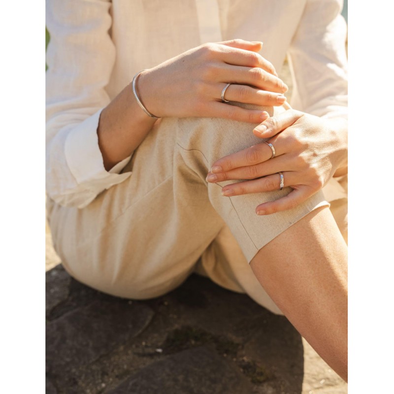 Ideal para combinar con el anillo Seine Solitaire o el anillo Seine Vague, permite crear un juego de líneas y luces tan refinado como intuitivo.