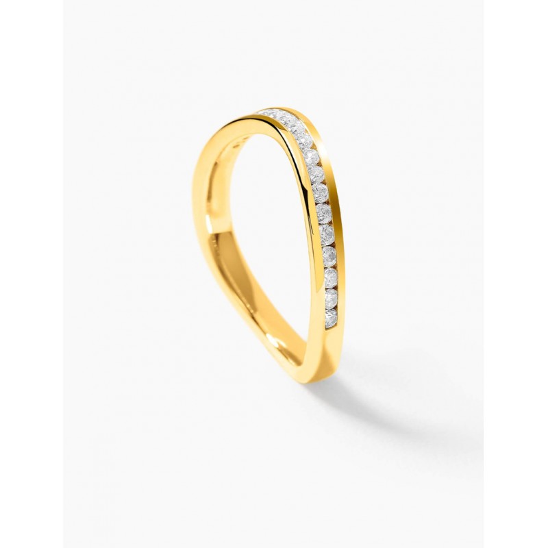 El anillo de oro Seine Reflets captura la luz en un brillo continuo, gracias a su hilera de óxidos de circonio blanco finamente engastados en canales.