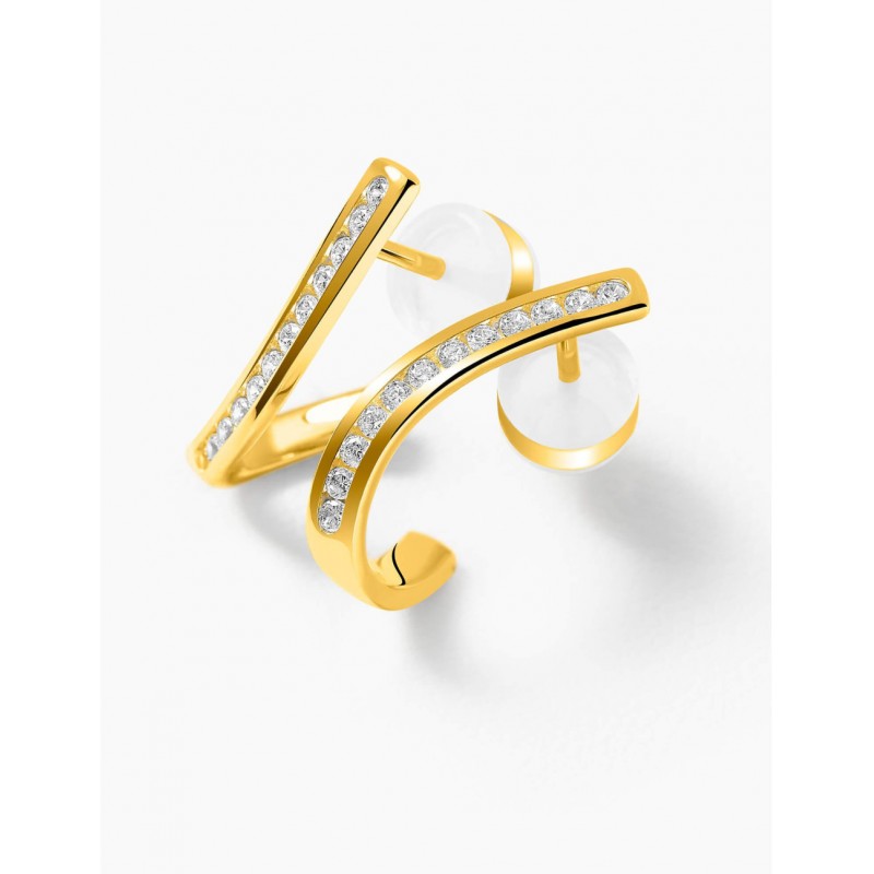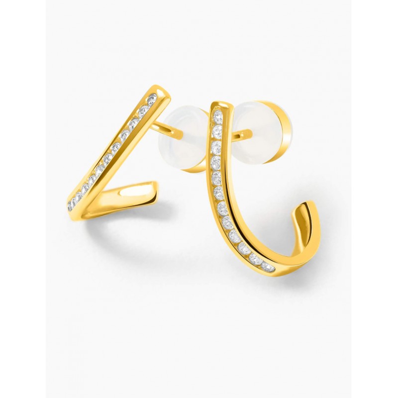 Fabricadas en plata de ley 925‰ bañada en oro de 750‰ (18 quilates), desprenden una suave calidez que realza el brillo de las piedras blancas.